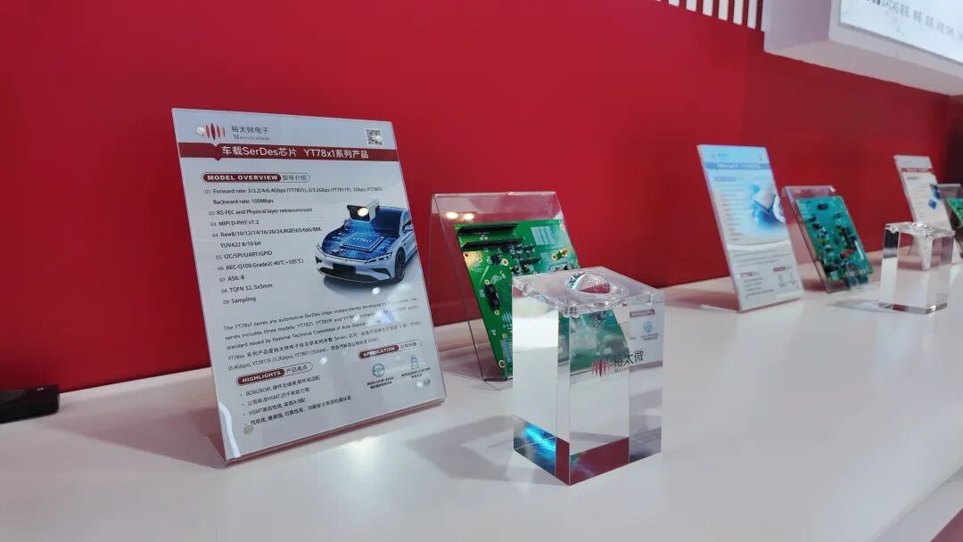 本届车展,裕太微电子重点展示了自主研发的车载SerDes芯片系列——YT78系列串行器与YT79系列解串器。该系列产品严格遵循公有标准HSMT,具备高可靠、低延迟、强抗干扰等核心优势,可广泛应用于ADAS、360环视、DMS、OMS等智能驾驶与智能座舱场景。目前该系列芯片已在多家头部车企客户中同步验证,预计2026年实现量产