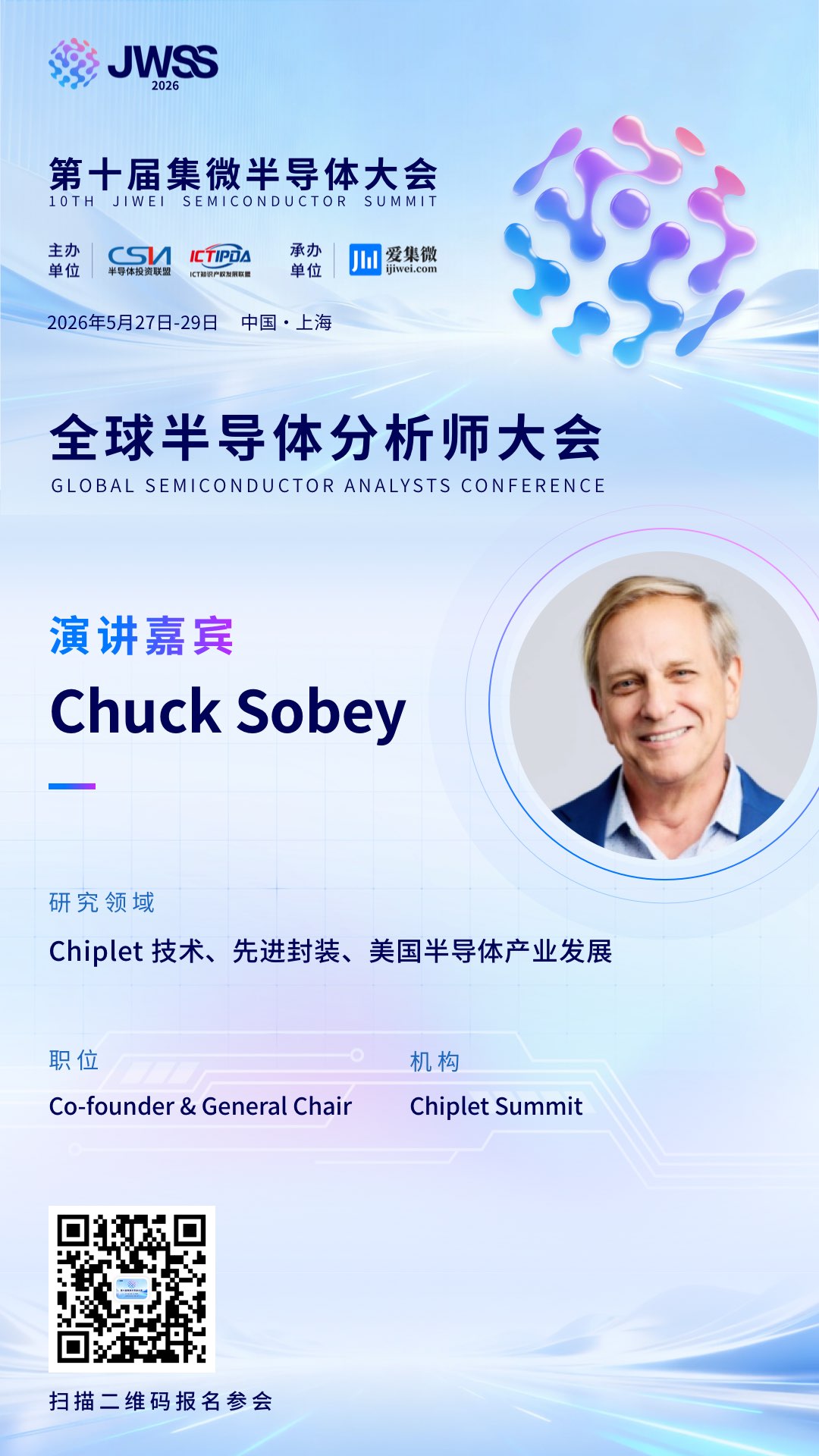 这是一场洞悉Chiplet技术前沿与产业格局的思想盛宴,一次与全球顶级峰会主席面对面交流的难得机遇。5月27-28日,上海张江,让我们共同聆听Chuck Sobey带来的深度洞察,在异构集成浪潮中精准把握芯粒技术的演进脉动!