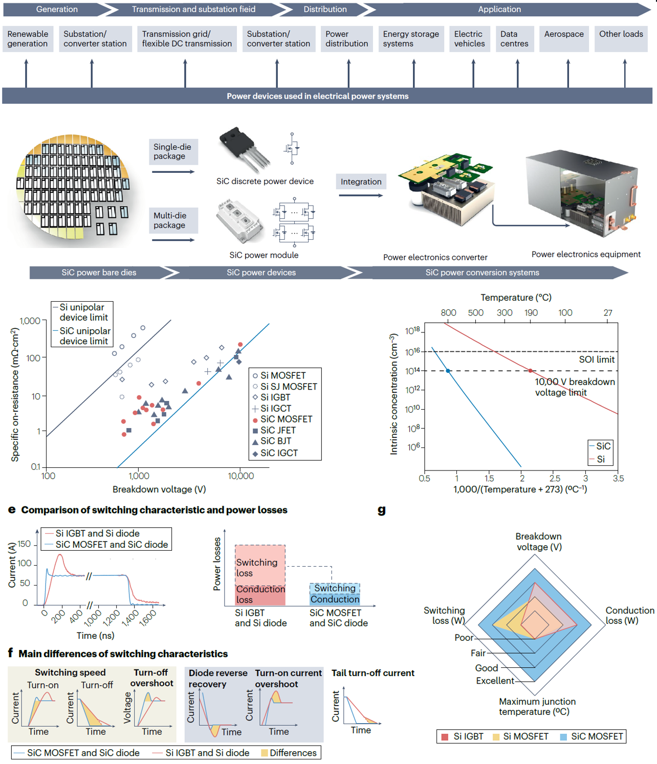 图1 碳化硅功率器件的应用领域、封装集成与优异特性