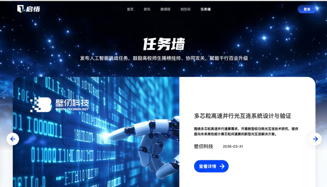 在开源实践方面,壁仞科技在平台上发布人工智能挑战任务,围绕国产算力迁移适配、模型优化等真实产业需求设置课题,引导高校师生以“实战练兵”的方式参与国产算力生态建设,推动学生在开源实践中提升工程化能力。
