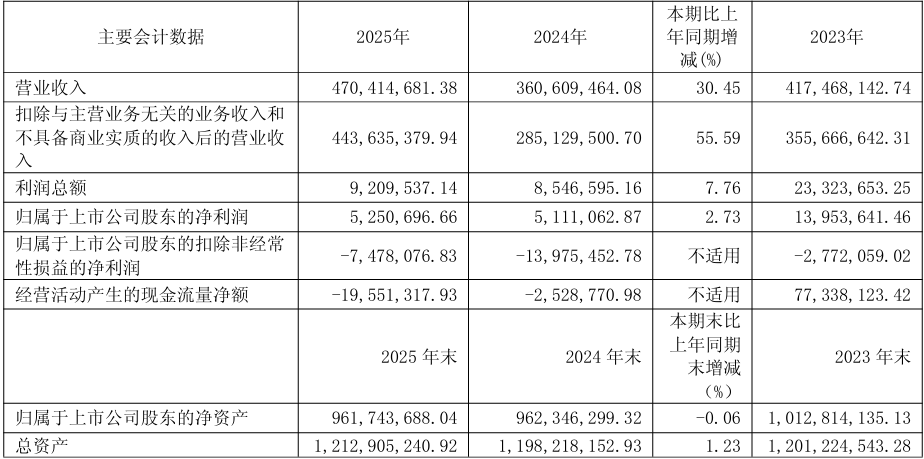 4月8日,宁波波导股份有限公司发布2025年年度报告。报告显示,公司实现营业收入4.7亿元,同比增长30.45%;归属于上市公司股东的净利润为525.07万元,同比增长2.73%;扣非后净利润为-747.81万元,较上年同期减亏649.74万元。