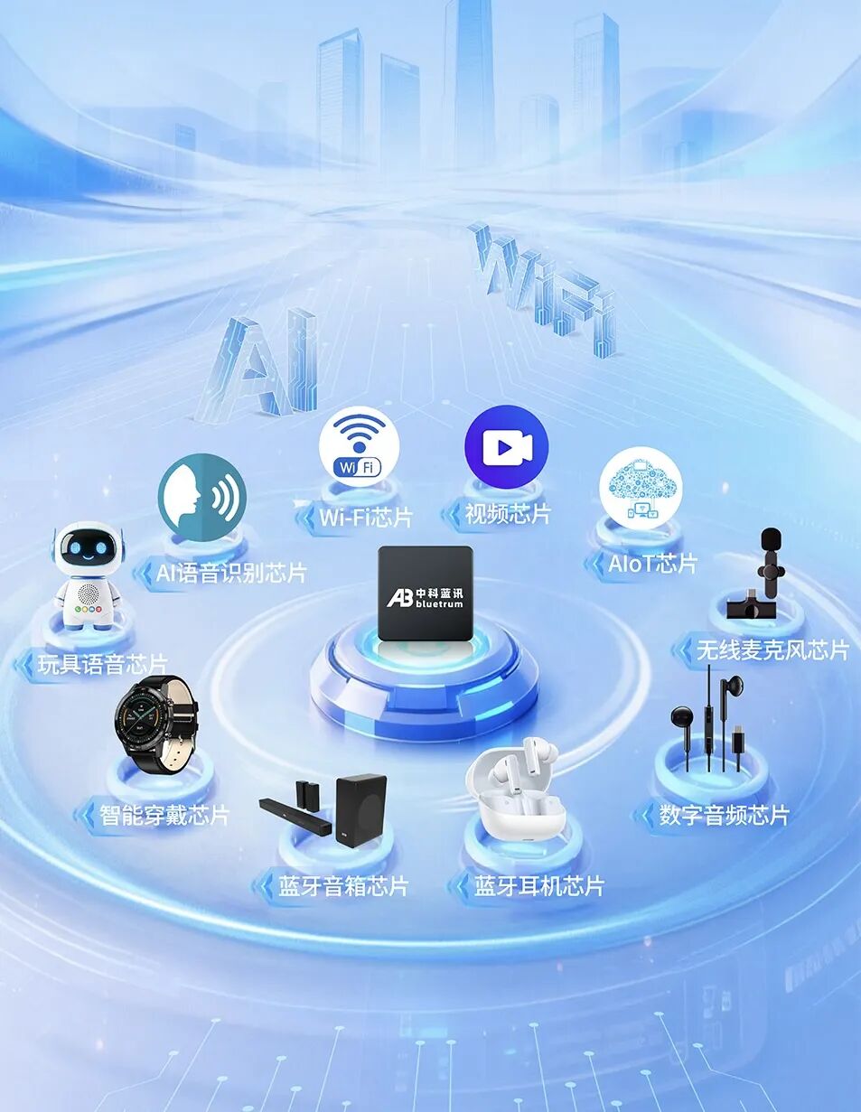 落地 “两个连接” 战略,推出首款 Wi-Fi+BT + 音频三合一芯片 AB6003G、首款蓝牙 + 音视频芯片 BT879X,正式布局 Wi-Fi 与视频芯片领域,产品可广泛应用于智能家居、智能穿戴、AI 玩具等多场景。