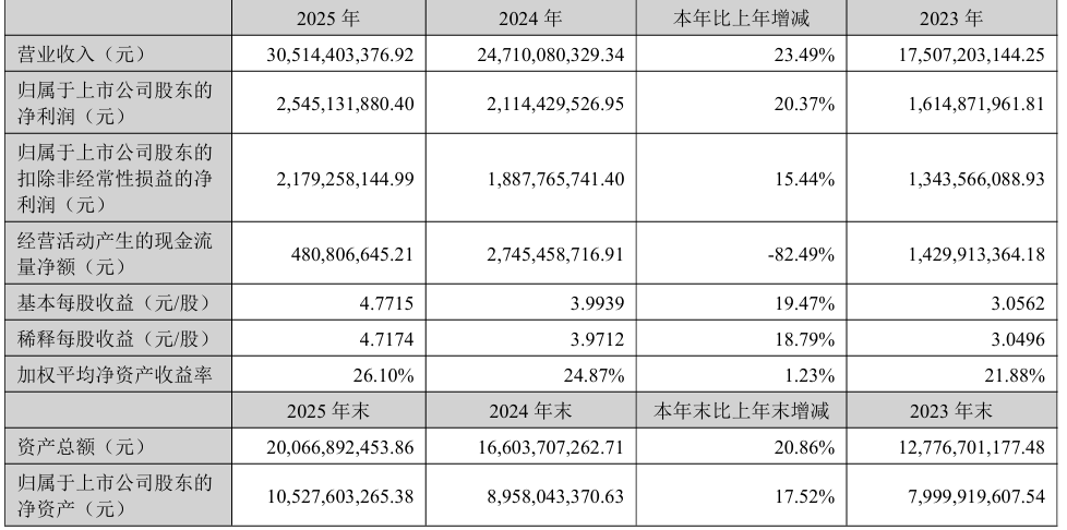 4月10日,安克创新科技股份有限公司正式发布2025年年度报告。年报显示,2025年安克创新实现营业总收入305.14亿元,同比增长23.49%;归属于上市公司股东的净利润25.45亿元,同比增长20.37%;归属于上市公司股东的扣除非经常性损益的净利润21.79亿元,同比增长15.44%。截至2025年末,公司总资产200.67亿元,归属于上市公司股东的净资产105.28亿元,整体财务状况稳健。