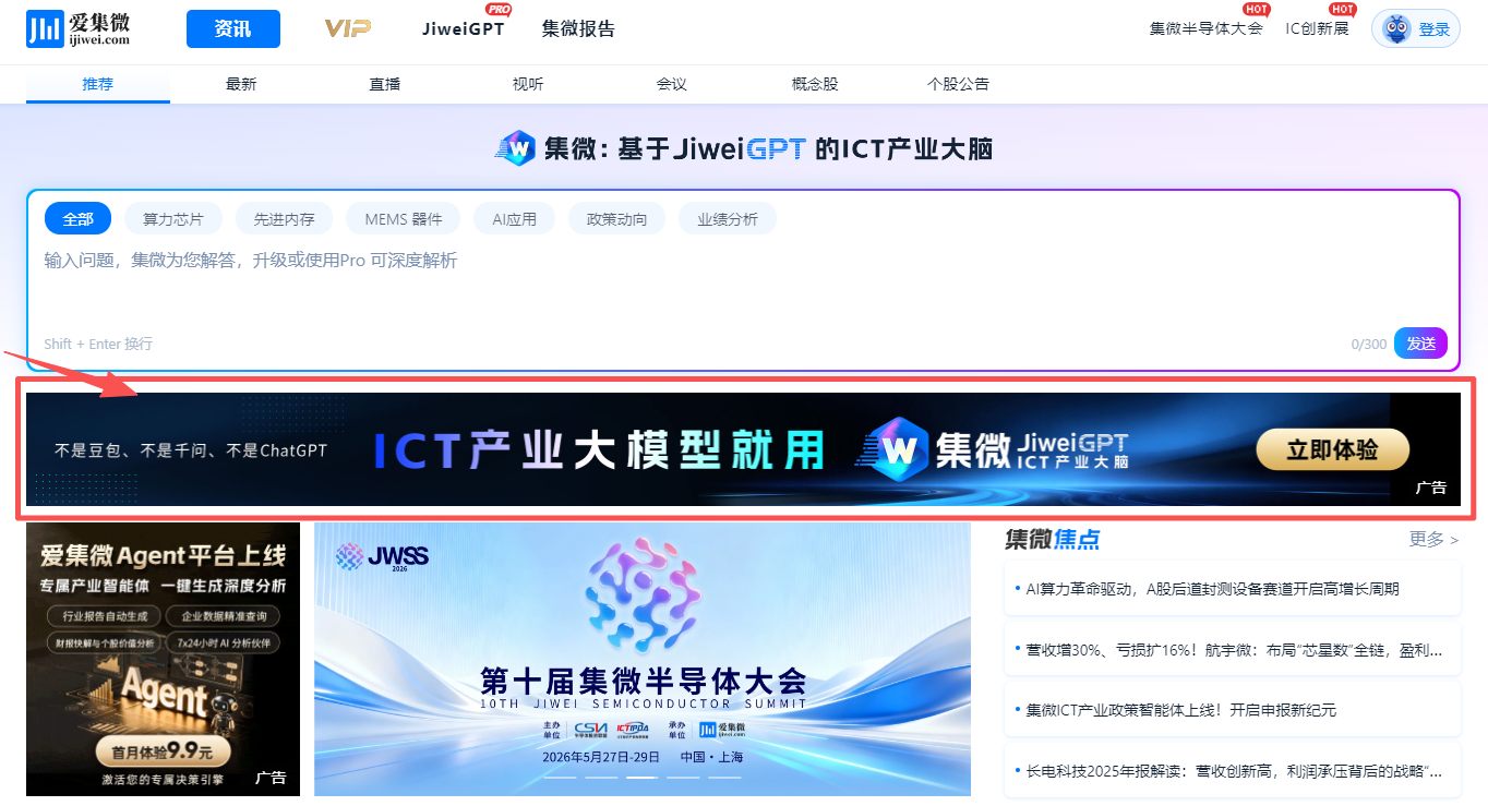 方式二:打开爱集微APP或网站,首页推荐位一键进入