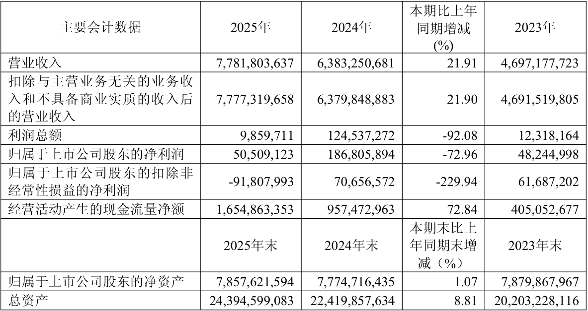 根据公司于2026年4月27日发布的2025年年度报告,2025年格科微实现营业收入77.82亿元,较上年同期增长21.91%;归属于上市公司股东的净利润为5050.91万元,较上年同期下降72.96%;归属于上市公司股东的扣除非经常性损益的净利润为-9180.8万元,同比由盈转亏。利润下滑主要系当期美元兑人民币汇率呈现单边下跌态势,公司持有的美元资产形成了较大的汇兑浮亏。