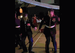 两位身穿礼服的海军陆战队成员跳舞拍TikTok