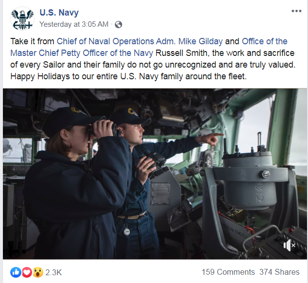 而讽刺的是,美军一方面指控TikTok“构成国家安全威胁”,另一方面却依旧青睐“曾泄露5000万用户信息”的脸书。此外,脸书还被曝“发布政治竞选广告”,遭美国国会、白宫调查。但观察者网发现,美国海军至今仍在脸书发布征兵广告、宣传视频。