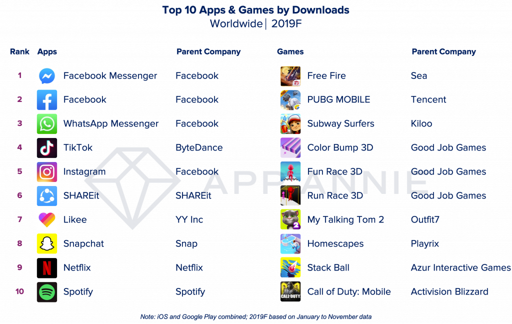 而对比本年度下载量,TikTok击败脸书的Instagram,排名第四——这也说明TikTok用户(按年)增长率超过了脸书系部分产品。具体而言,TikTok在过去一年增加了6.14亿用户,两年总下载量达到了15亿,其中活跃用户6.25亿。