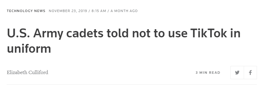 美国陆军响应号召的速度比美国海军要快。11月23日,美国海军已经规定:不能身穿军装拍摄TikTok视频。