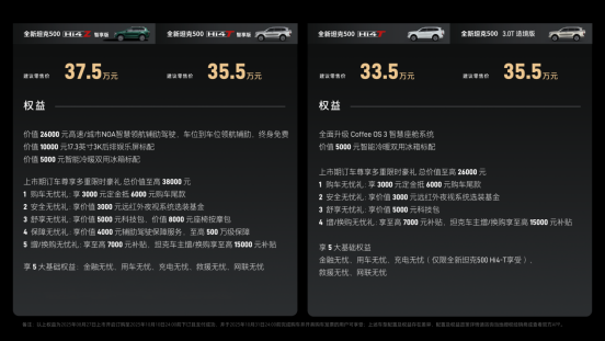 8月27日,长城汽车将一场特殊的上市发布会搬进了世界文化遗产都江堰畔,全新坦克500在此正式揭开面纱。全新坦克500定位全场景智能豪华越野SUV,推出Hi4-Z、Hi4-T及3.0T V6燃油三种动力版本,其中Hi4-Z智享版37.5万元,Hi4-T智享版35.5万元,Hi4-T基础版33.5万元,3.0T造境版35.5万元,相比预售价格更具吸引力。