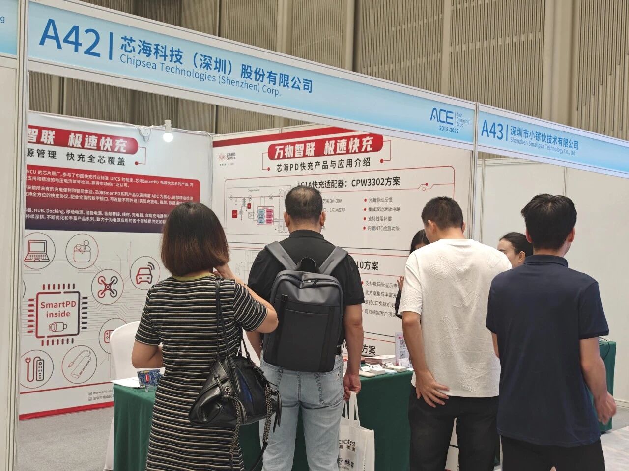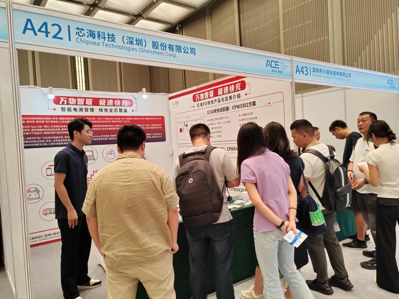 展会现场人流如织,芯海展台琳琅满目的快充产品及解决方案吸引大量专业观众驻足体验,尤其是采用AVS(自适应电压调节)技术相关产品成为焦点。