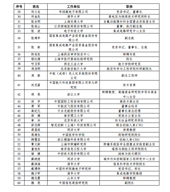 集微网注意到,杭州宇树科技股份有限公司创始人、CEO兼CTO王兴兴,北京百度网讯科技有限公司首席技术官王海峰,北京银河通用机器人有限公司创始人兼CTO王鹤,中微半导体设备(上海)股份有限公司董事长兼总经理尹志尧,数字感知芯片技术全国重点实验室主任邓中翰,中科创星科技投资有限公司创始合伙人米磊,华润微电子有限公司党委书记、董事长何小龙,国家集成电路产业投资基金股份有限公司副总裁张建华,国家集成电路产业投资基金股份有限公司党委书记、董事长、总裁张新,智元创新(上海)科技有限公司联合创始人兼CTO彭志辉,清华大学集成电路学院教授魏少军等一批等科创领域的代表入选名单。