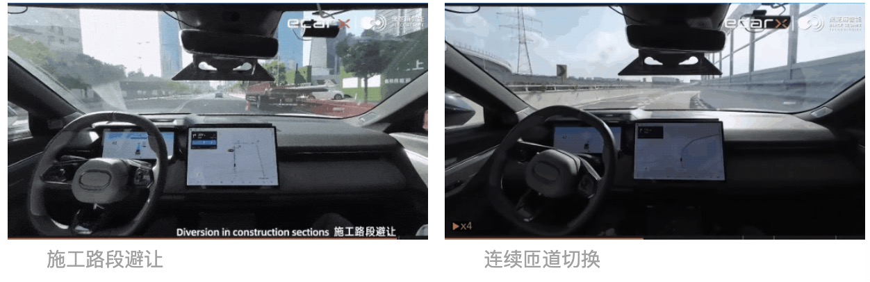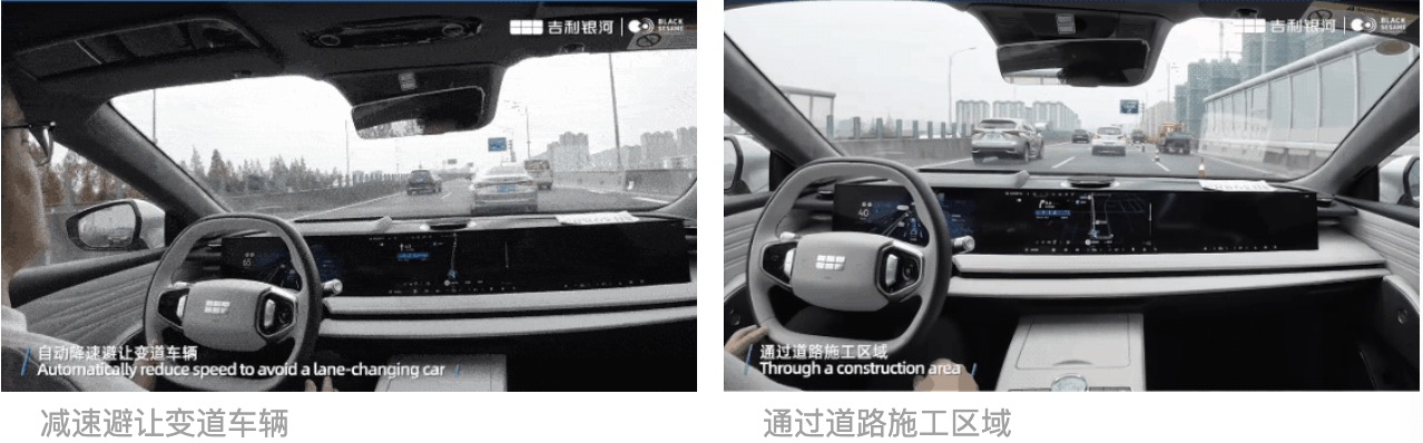 在高速辅助驾驶应用场景中,车辆能够稳定实现自主变道、通过大曲率匝道、应对cut-in、通过道路施工区域等一系列高阶辅助驾驶功能,显著提升行车便捷性与安全性,为用户带来更为舒适和可靠的驾驶体验。