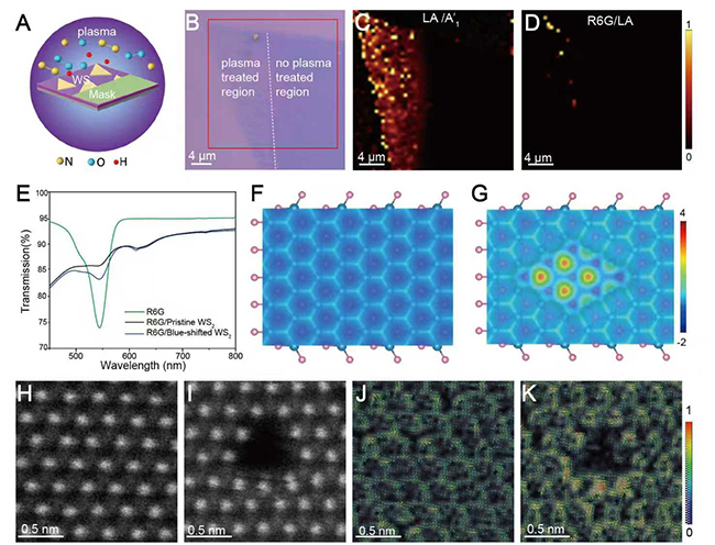 近日,清华大学深圳国际研究生院雷钰副教授团队开发了一种等离子体处理二维材料引入缺陷的通用方法,通过等离子体处理在单层二硫化钨(WS2)中引入纳米孔,显著增强分子吸附能力。同时,纳米孔浓度的变化引起了WS2的光致发光光谱从红移到蓝移的转变,蓝移WS2与待测分子形成更好的带隙匹配,极大地提高了电荷转移效率,实现更低浓度的分子检测。