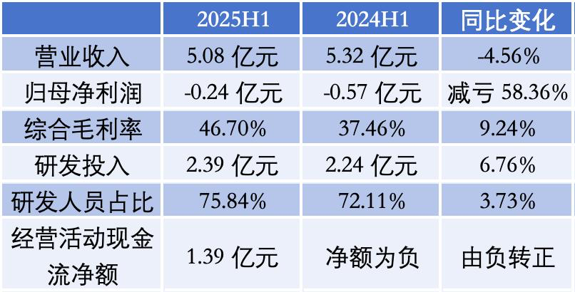 日前,盛科通信发布的半年报显示,实现营业营收5.08亿元,同比下降4.56%;归母净利润亏损2368.91万元,上年同期净亏损5688.71万元。