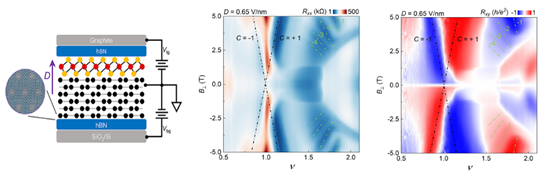 图1. 电子填充数ν = 1处的可切换C=±1的陈绝缘态