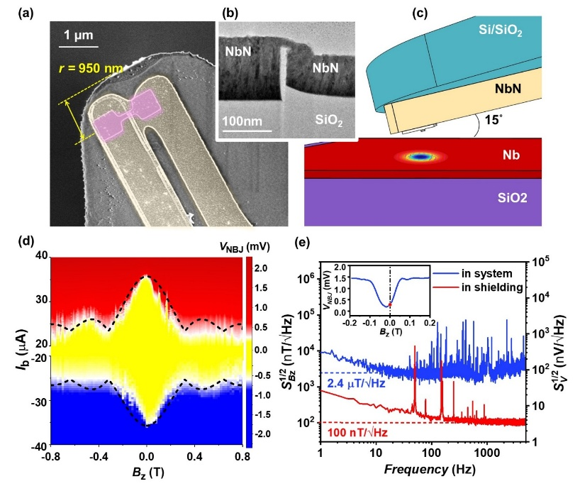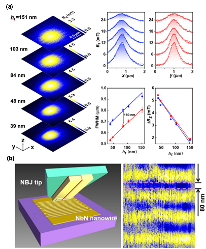 近日,中国科学院上海微系统与信息技术研究所张露副研究员、陈垒研究员团队在低温磁成像技术领域取得重要进展。团队成功研制出基于超导氮化铌(NbN)材料和三维纳米桥结构的新型磁显微探针,将超导量子干涉器件(SQUID)类扫描磁显微技术的空间分辨率提升至80纳米,为量子材料与器件的研究提供了新的有力工具。该成果已发表于学术期刊《ACS Nano》(论文链接:https://doi.org/10.1021/acsnano.5c06397)。
