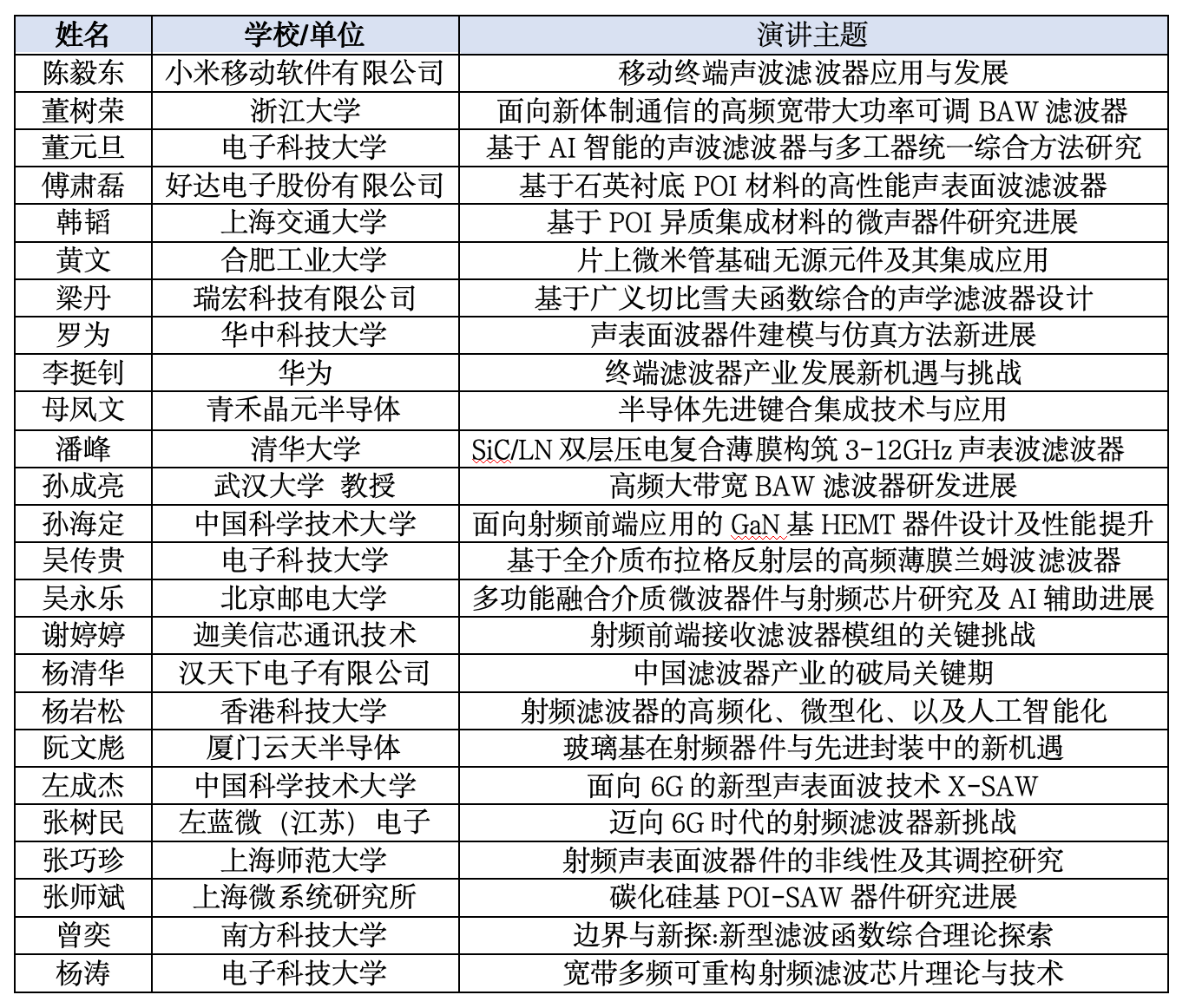 本届大会采用“主题报告+深度交流”模式,旨在搭建产、学、研互动的高价值平台。目前,大会首批28份主题报告已正式揭晓,内容全面覆盖滤波器领域的前沿技术路径与市场趋势研判。随着会期临近,限时报名通道已进入最后冲刺阶段。