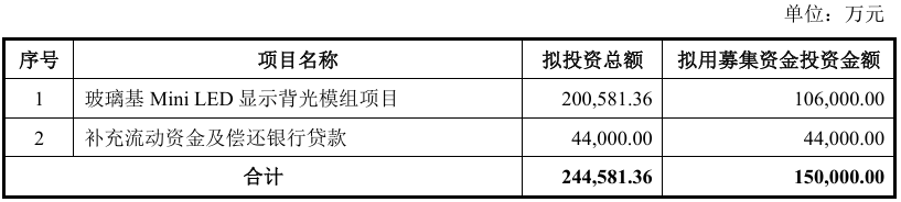 玻璃基Mini LED显示背光模组项目拟规划对现有厂房进行装修改造,并引进先进的生产设备,达产后将实现年产605万片玻璃基Mini LED显示背光模组的生产能力。本项目的实施有助于公司把握Mini LED产业快速发展的机遇,提前进行产能布局以有效满足市场对Mini LED显示背光模组产品日益增长的需求,推动公司未来可持续发展。