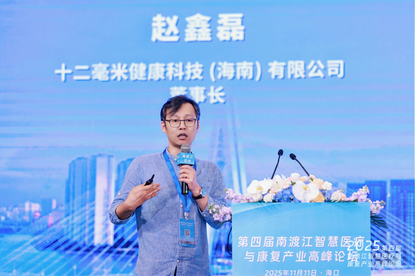 会上,十二毫米健康科技(海南)有限公司董事长赵鑫磊做题为《AI+近视防控数字疗法新范式》的报告。