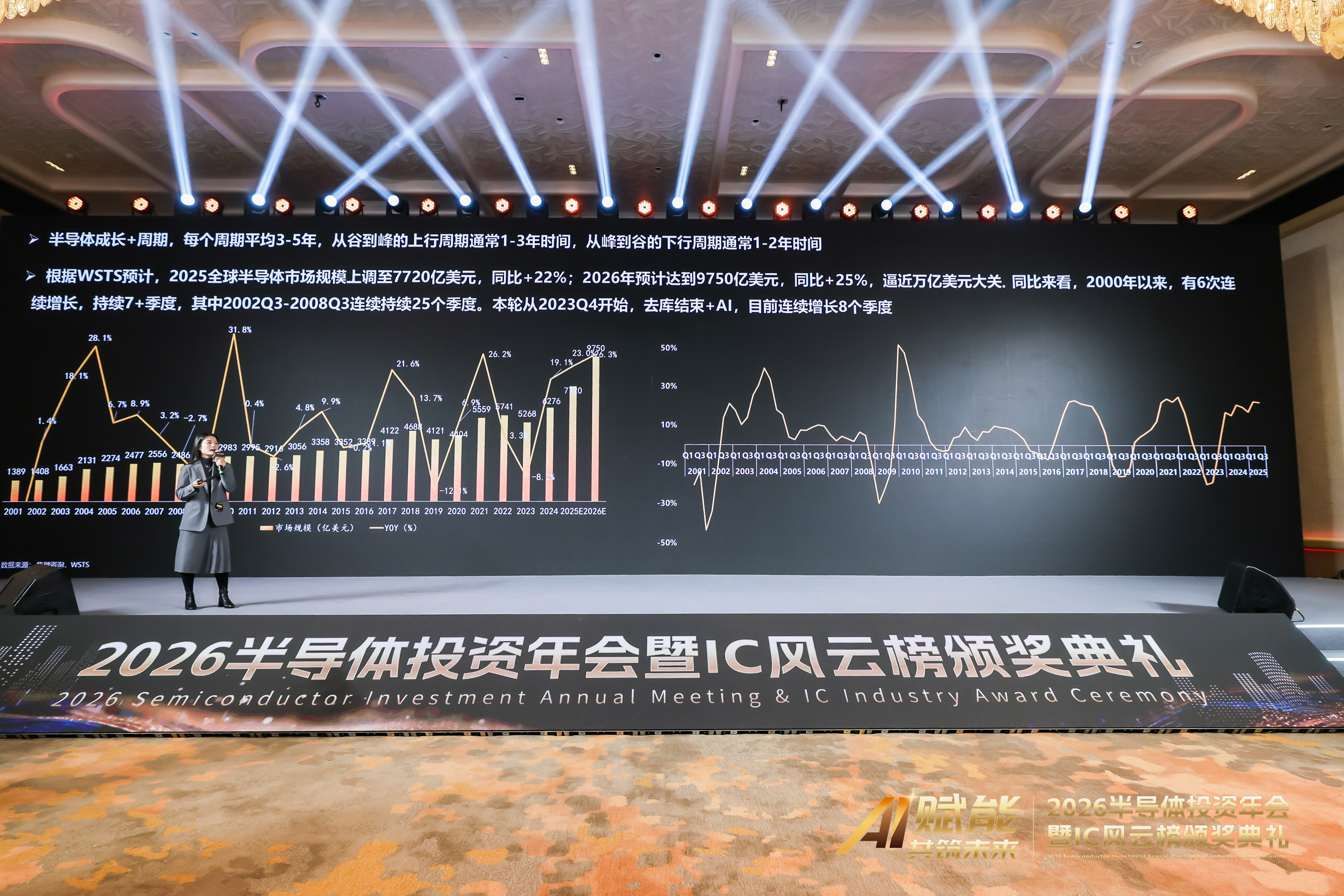 2025年12月20日,由半导体投资联盟和集成电路投资创新联盟主办、ICT知识产权发展联盟协办、爱集微承办的“2026半导体投资年会暨IC风云榜颁奖典礼”在上海圆满举办。会上,集微咨询业务总经理朱婉艳发表主旨演讲,就当前全球半导体产业发展形势、中国半导体产业发展现状和关键图景进行了深度剖析和展望,并正式发布《2025中国集成电路|人工智能产业园区榜单》。