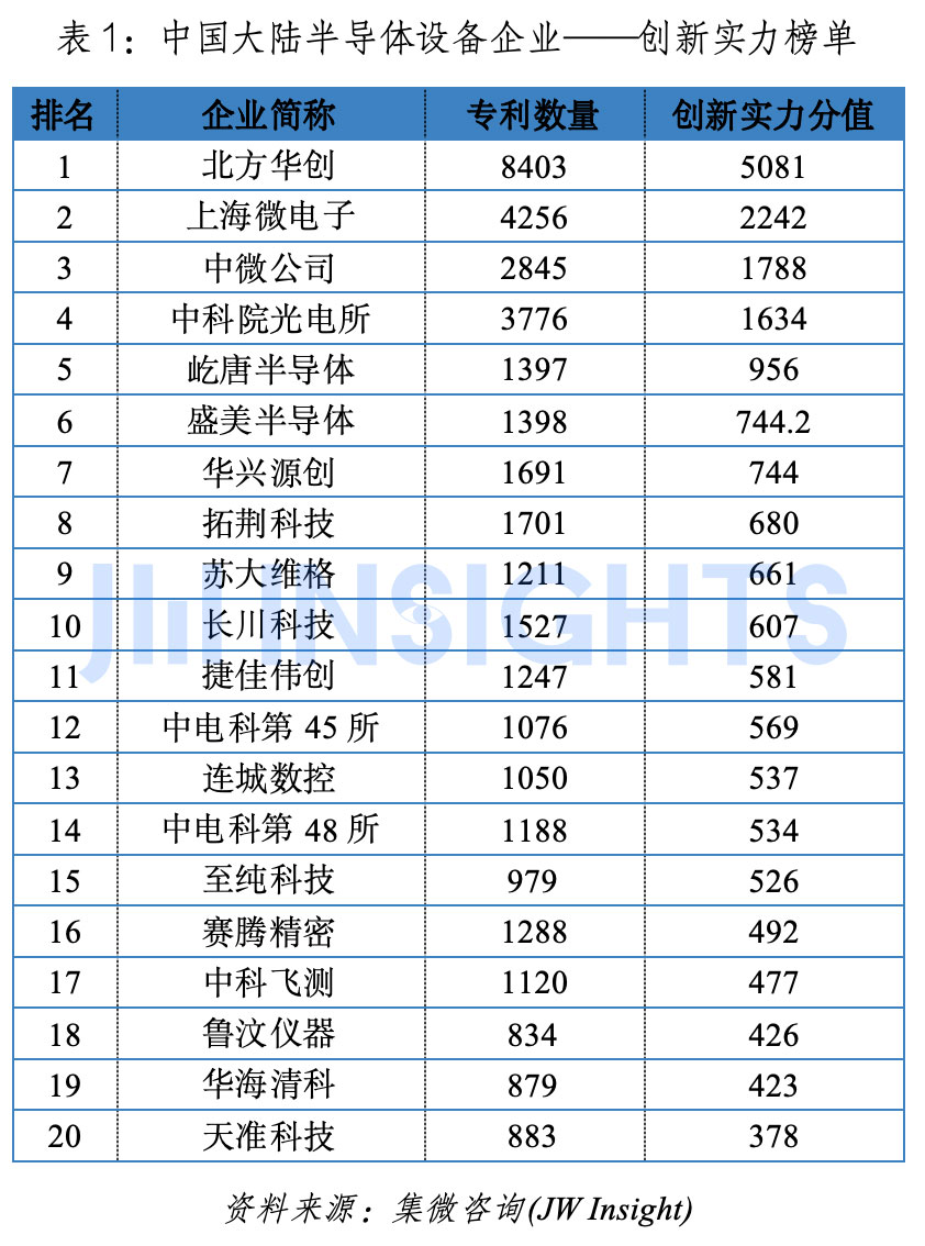 中国大陆半导体设备企业——创新实力榜单