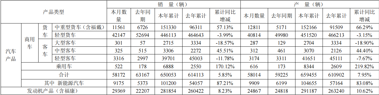 福田汽车2025年销售汽车65.01万辆,同比增长5.85%