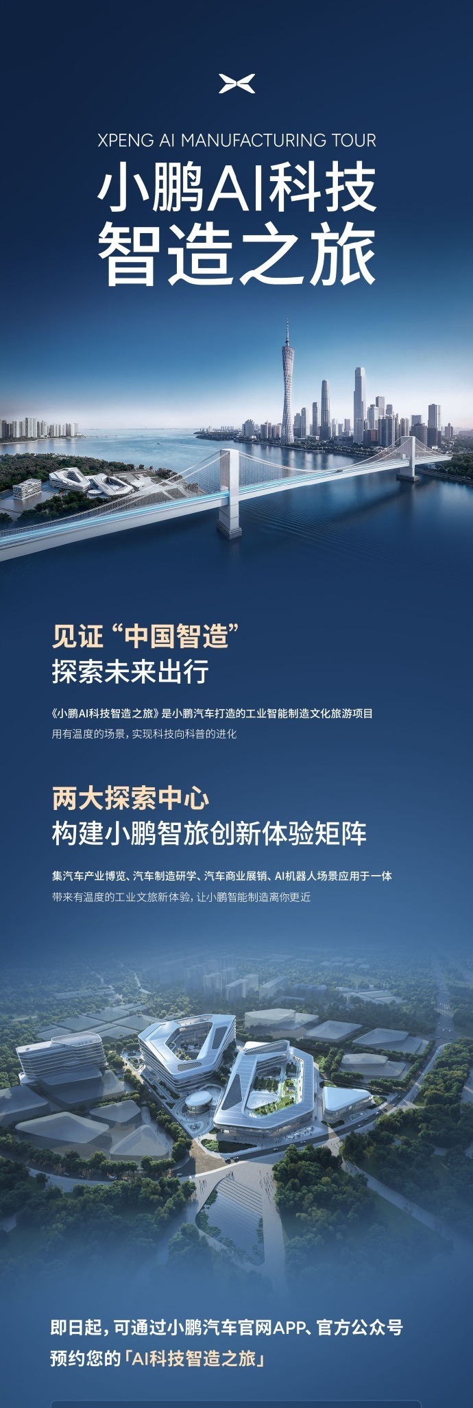 1月9日,小鹏汽车正式启动“小鹏AI科技智造之旅”项目,首次向公众开放小鹏全球总部与广州、肇庆智造基地,并面向中小学生开设汽车制造实践课程,最早1月12日可预约参观。