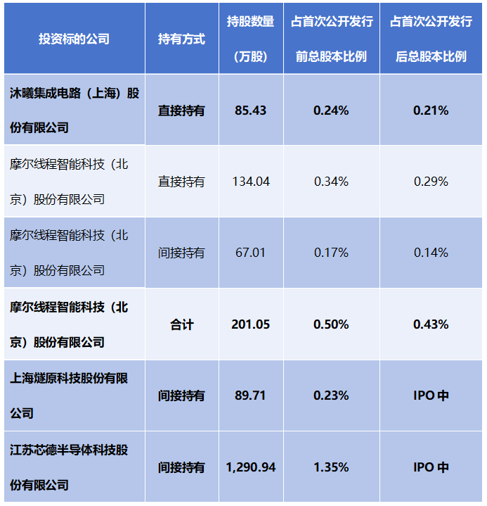 中科蓝讯对沐曦股份、摩尔线程、燧原科技、芯德半导体持股情况