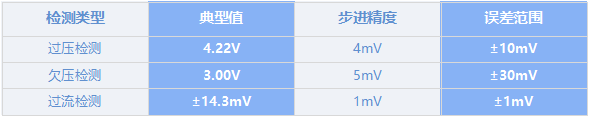 支持单节电池的多级保护,电压范围覆盖1.5V-5.5V