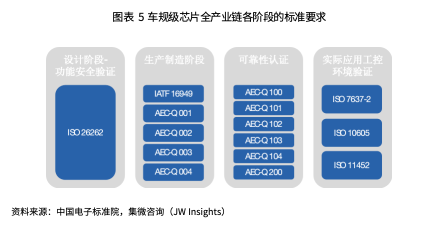 根据中国汽车工程学会发布的团体标准T/CSAE 222—2021《纯电动乘用车车规级芯片一般要求》,国内首次在正式文件中提出“车规级芯片”定义,即“满足汽车质量管理体系,符合可靠性和功能安全要求的集成电路”。