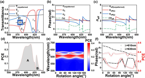 图1. 双折射导模谐振相位梯度超表面的工作原理
