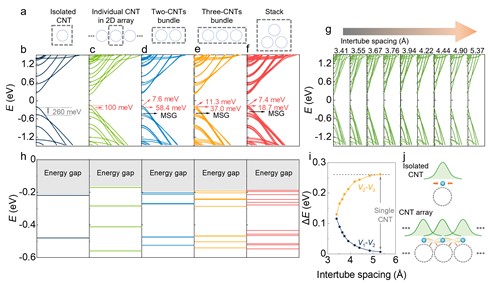 图2 密度泛函理论模型计算的碳纳米管阵列中的管间耦合效应和能带重构机制