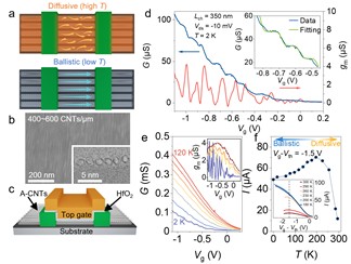 理解周期构型组装电子体系的相干耦合与输运特性,是构筑高性能纳电子器件和新型量子器件的重要基础。将一维弹道导体人工组装为二维有序系统,既能保留单根一维体系的优异电子特性,又能通过维度拓展实现可控的集体量子效应,为设计具有特定物性的人工电子体系提供了全新思路。高密度顺排碳纳米管阵列兼具出色的电子学应用潜力与广阔的量子调控前景。然而长期以来,大面积、高均匀性的高密度顺排碳纳米管阵列制备难度大,制约了系统性量子输运研究的开展;同时,这类多通道耦合体系的量子输运规律尚未明确,此前研究多聚焦于单根或少量碳纳米管束的输运行为,缺乏对数百根碳纳米管阵列量子输运特性的深入研究。