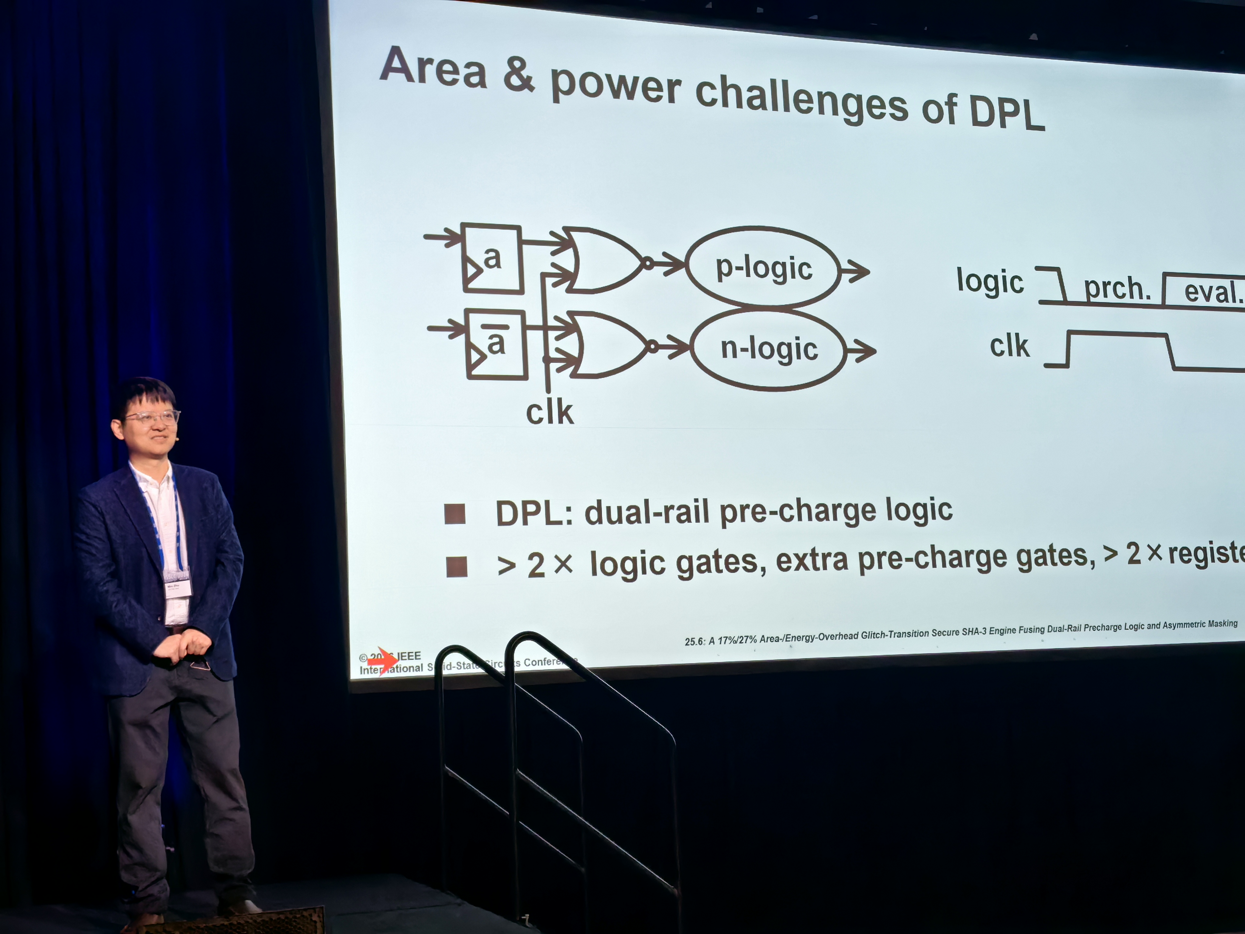 长期以来,物理安全防护一直是制约密码芯片实用化的关键瓶颈,如何在保证严格安全的前提下,平衡性能、效率与成本,成为全球密码芯片领域亟待破解的难题。而沐创在ISSCC 2026硬件安全专题上的入选成果,正是针对行这一核心痛点的架构级创新突破,即提出了融合双轨预充电逻辑与非对称掩码机制的低开销可证明安全SHA-3芯片架构,在严格安全模型下实现性能、效率与安全性的有机协同优化。