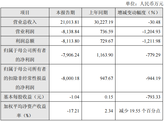 • 归属于母公司所有者的扣除非经常性损益的净利润:-8,000.18万元,同比下降944.19%;