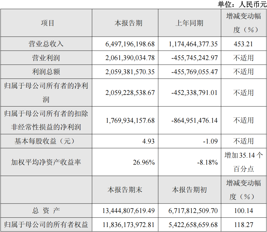 根据公告,2025年度寒武纪营业利润为20.61亿元,利润总额为20.59亿元,归属于母公司所有者的扣除非经常性损益的净利润为17.7亿元,基本每股收益为4.93元,加权平均净资产收益率为26.96%,各项核心财务指标均实现由负转正。