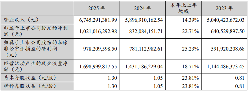 2月27日,顺络电子发布2025年度业绩报告,全年营收实现67.45亿元,净利润11.41亿元,归属于母公司股东的净利润10.21亿元,扣非净利润为9.78亿元;销售收入和利润再创历史新高。