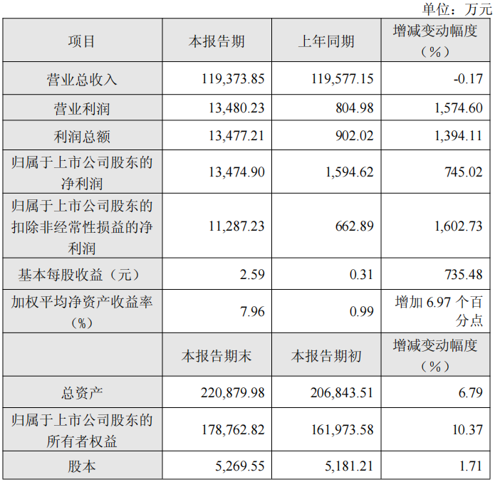 对于营业利润同比增长1,574.60%、利润总额同比增长1,394.11%、归属于上市公司股东的净利润同比增长745.02%、归属于上市公司股东的扣除非经常性损益的净利润同比增长1,602.73%、基本每股收益同比增长735.48%等核心指标的大幅增长,公告明确主要系核心产品盈利能力逐步改善,毛利额增加,叠加股权激励费用及研发费用减少所致。