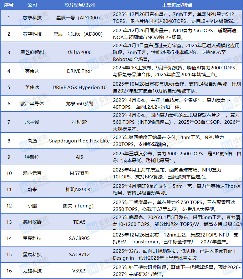 来源:爱集微 #智驾芯片# #产业链# #盘点预测#