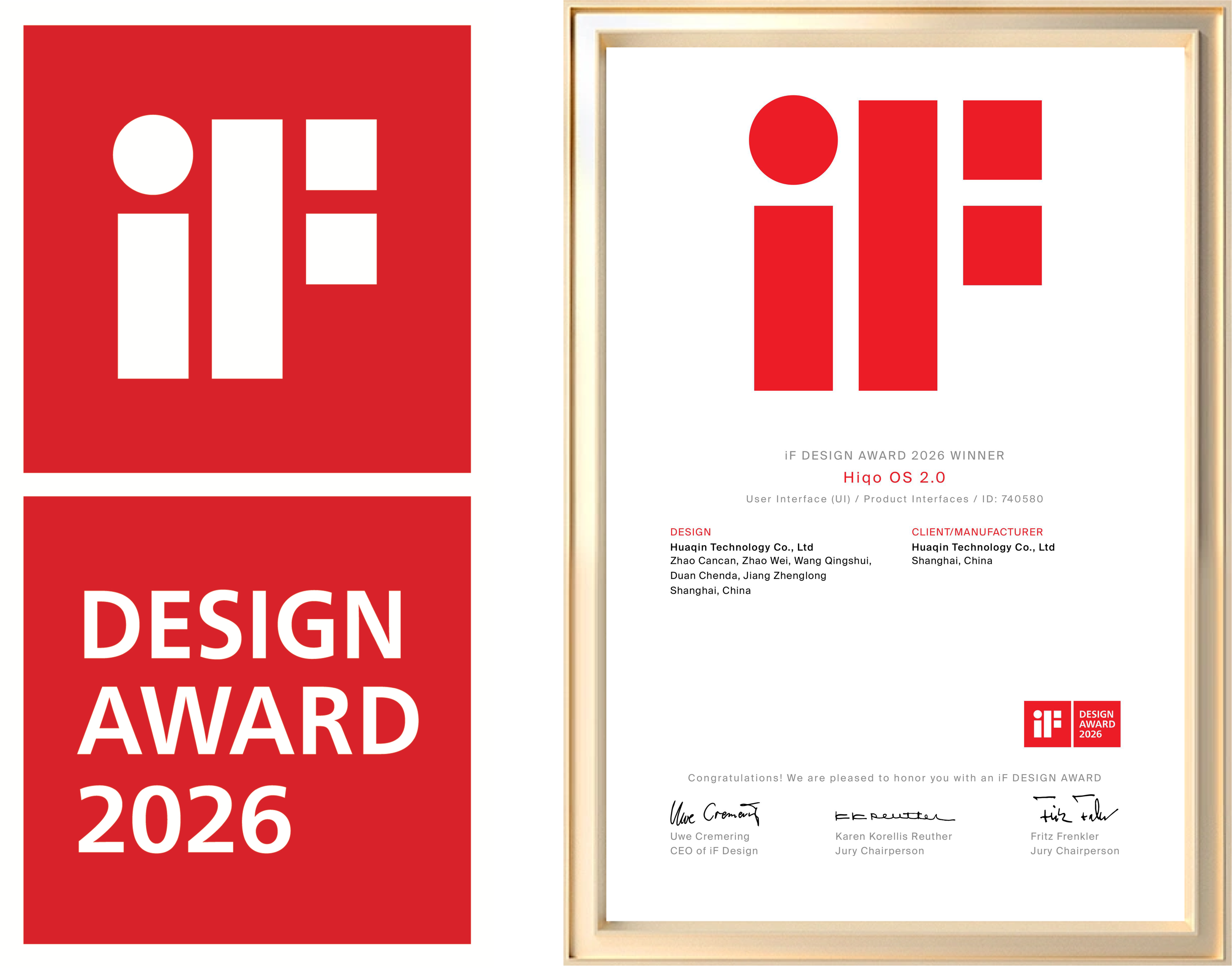华勤汽车电子业务HMI团队荣获德国iF设计奖
