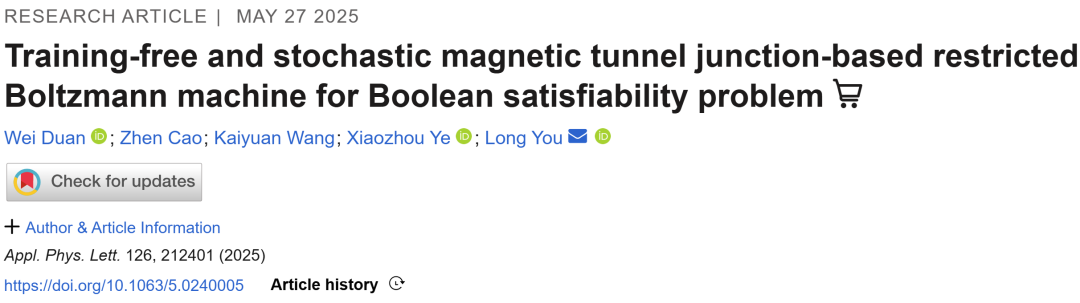 近期,华中科技大学游龙教授团队在Applied Physics Letters发表研究成果,提出了一种基于自旋电子器件的受限玻尔兹曼机(RBM)硬件实现方案,并成功应用于SAT问题求解。该工作的一项突出特点在于无需训练的RBM构建方法:通过线性规划直接确定网络权重与偏置,使RBM的能量最低态严格对应目标逻辑函数或约束条件,从而避免了传统概率神经网络中耗时且资源密集的训练过程。