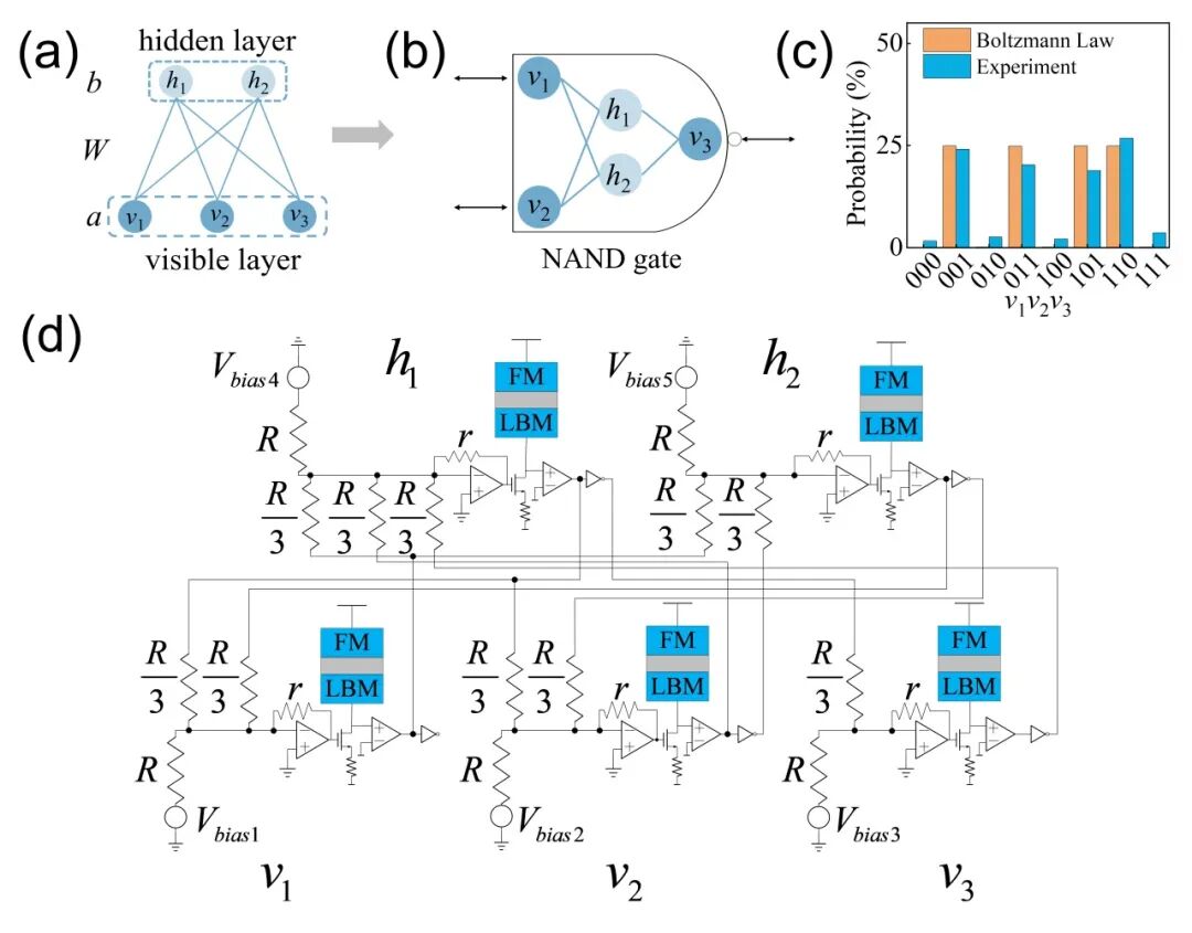 图2 基于随机MTJ的RBM NAND门结构及其采样特性