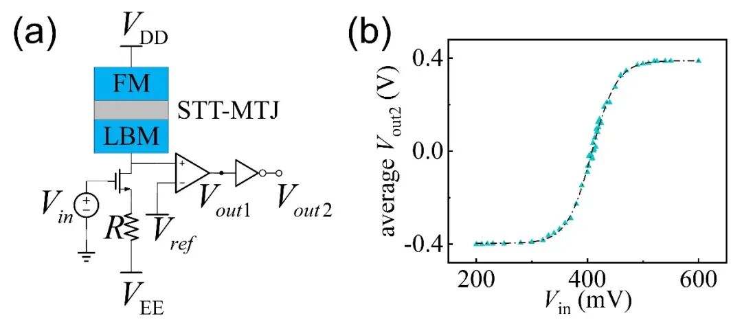 图1 随机STT-MTJ构成的二值随机神经元及其概率输入输出特性