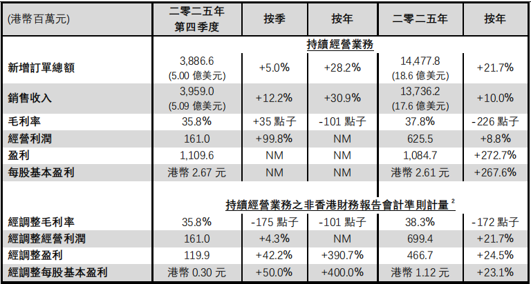 在人工智能驱动的结构性增长下,集团全年新增订单总额及销售收入均录得理想增长。尤其热压焊接解决方案于逻辑及内存市场领导地位进一步巩固,销售收入创下新高,并接获多项重大新订单。