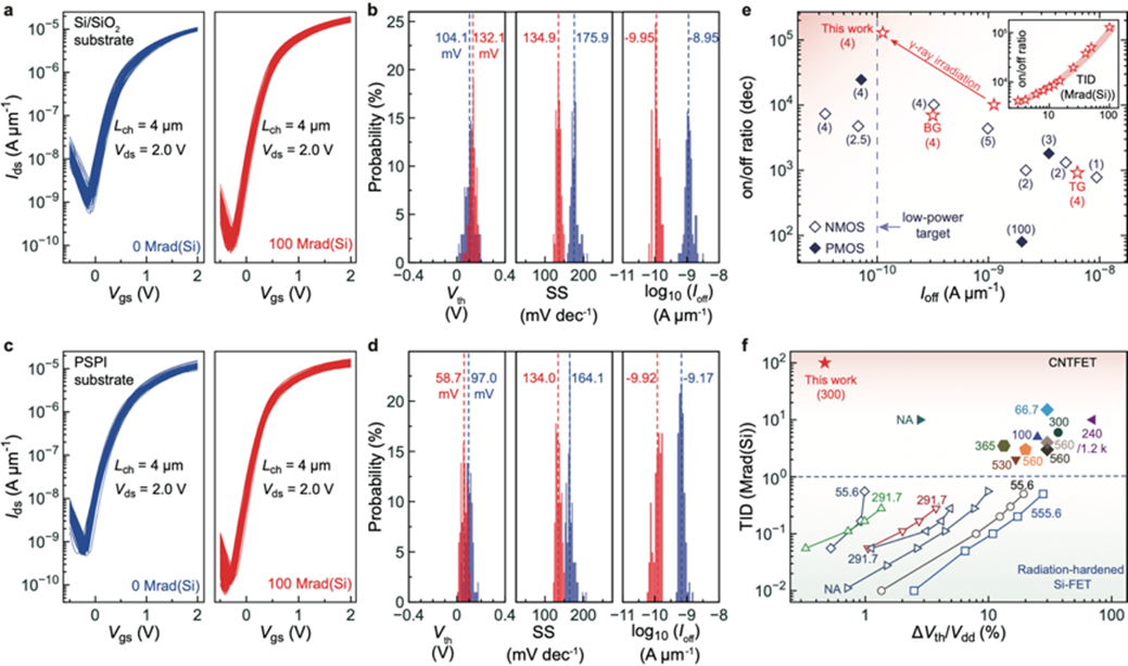 该研究为CNTFET的后处理提供了一种高效、可扩展的工业化路径,也为其在深空探测、核能应用等强辐射环境中的部署应用奠定了技术基础,标志着碳纳米管晶体管向实际应用迈出关键一步。