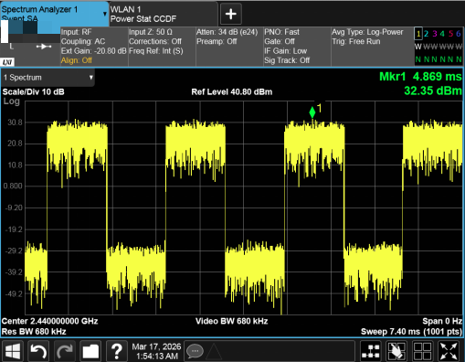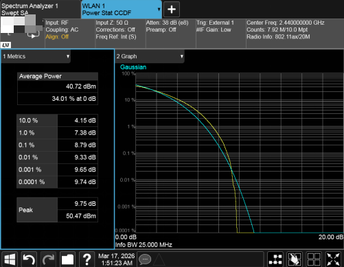 2.4GHz调制频域信号-输入信号峰均比曲线
