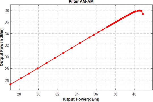 诺思产品CW信号工作频率2165MHz功率输入输出曲线