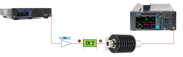 评估射频器件的CW耐受功率时,由信号源输出固定频点,经功放调至目标功率后输入滤波器,并通过频谱仪实时监控;随后以步进方式提升功率,直至器件偏离正常工作点。CW测试信号及原理如下图所示。