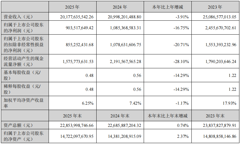 中集车辆于3月25日发布2025年年度报告。报告显示,公司2025年实现营业收入201.78亿元,同比下降3.91%;归属于上市公司股东的净利润为9.04亿元,同比下降16.75%;扣除非经常性损益后的净利润为8.55亿元,同比下降20.71%。